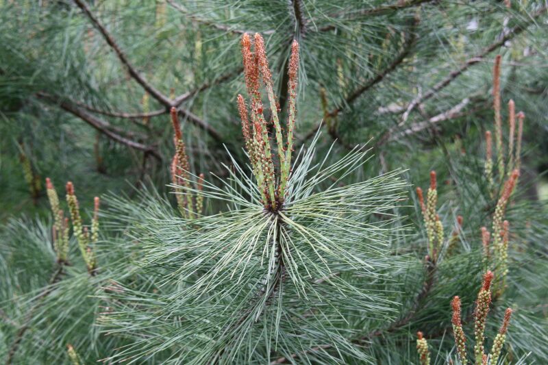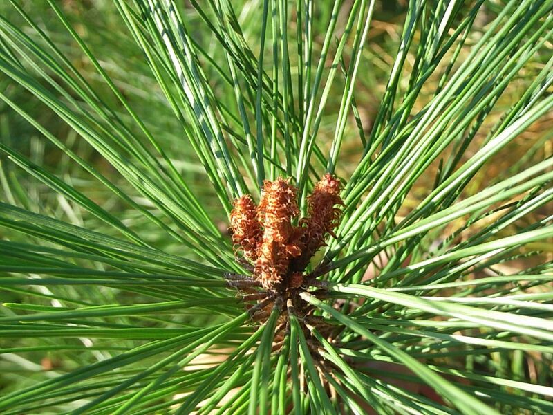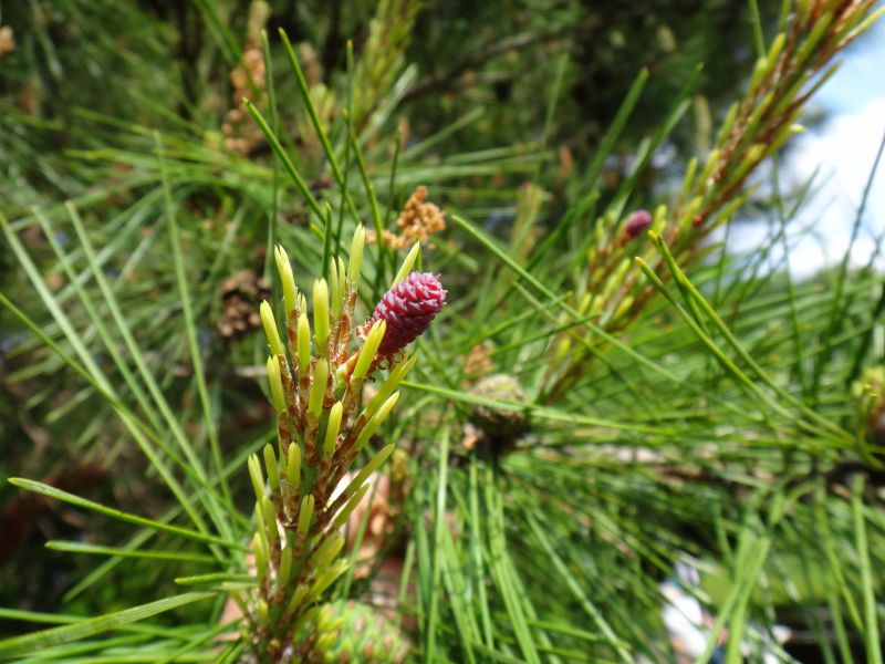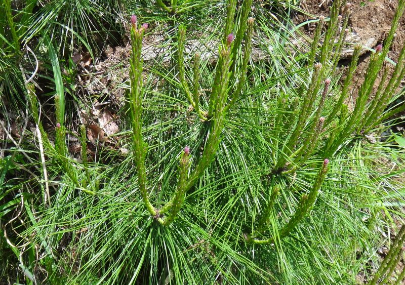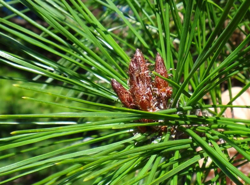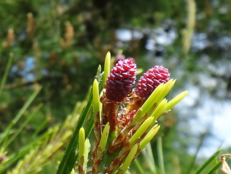 葉は針状で、2本一組で出る。葉が捩れたようになることもある。