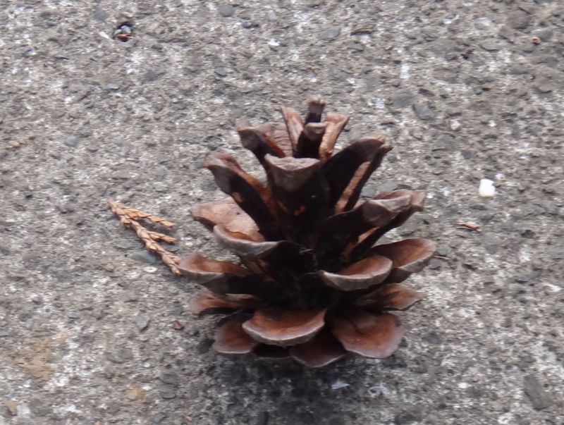 松笠は熟すと乾燥した日に種鱗が開いて、翼のある種子を飛ばす。(2015/5/10)