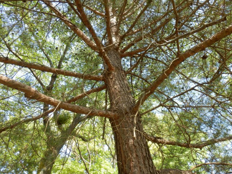 幹は直立し、車輪状に分枝し、小枝も多数出し、樹皮はひび割れ、赤みを帯びる。