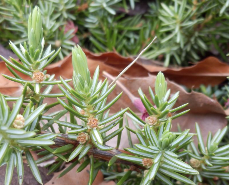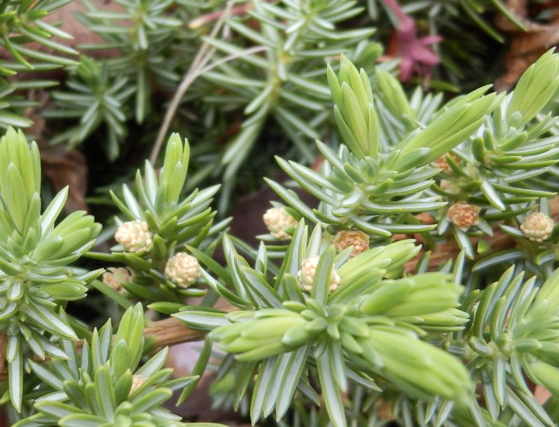 直径8〜9ミリで淡緑色の球果が枝先に単生することがある。