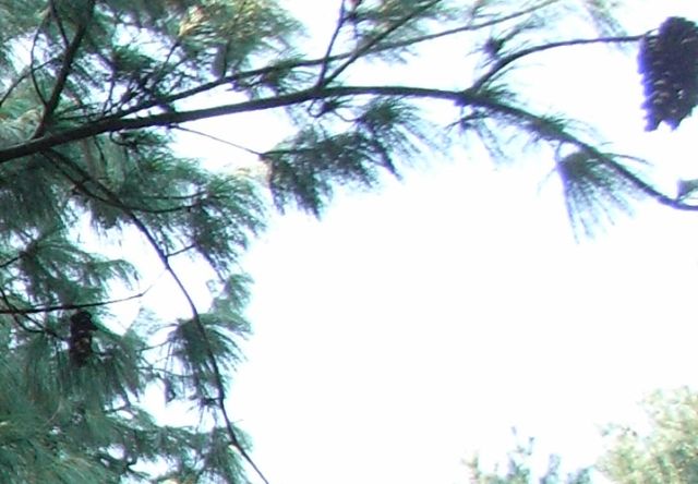 細長くて大きい球果が1〜2個垂れ下がる。(2009/9/17)