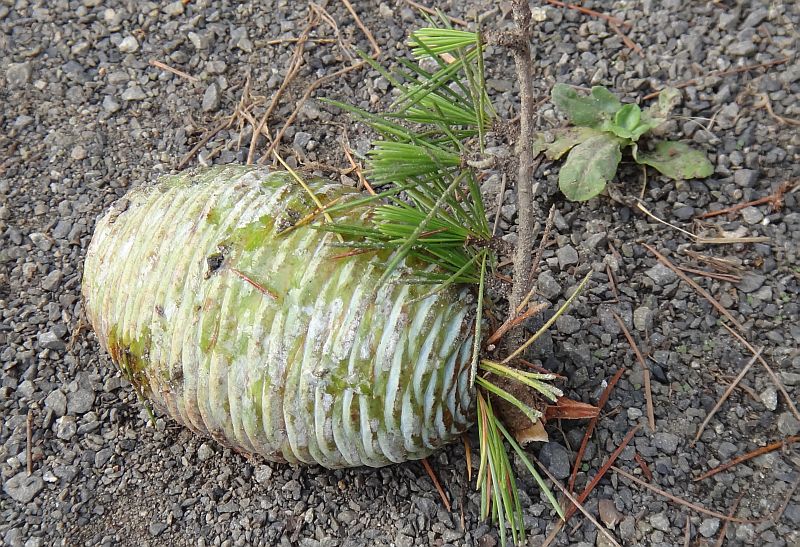 球果も短枝上に直立し、長さ10センチぐらいの楕円体であり、