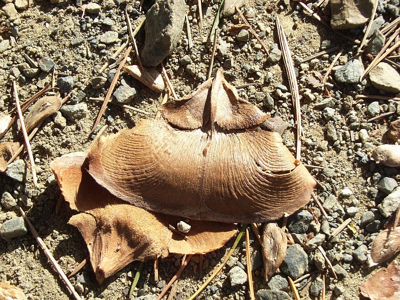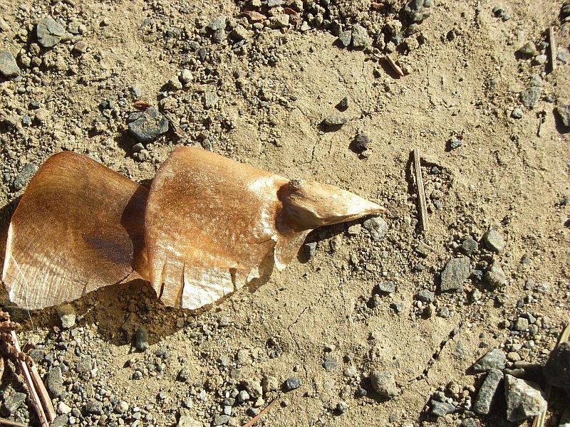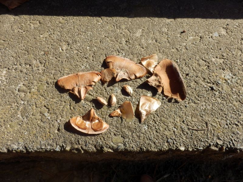 対のままで落ちた種子と、散らばった細長い種子。