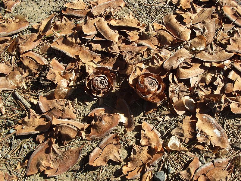 松笠はバラバラになって落ちる(芯の部分だけ残ってバラの花のようになることがある)。
