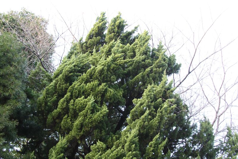 鱗葉と針葉があり、火炎状にねじれた樹形となりやすい
