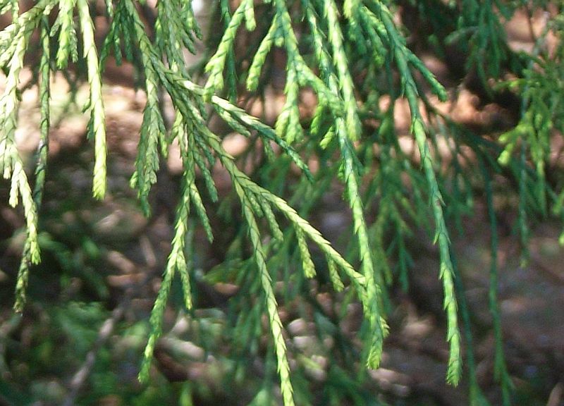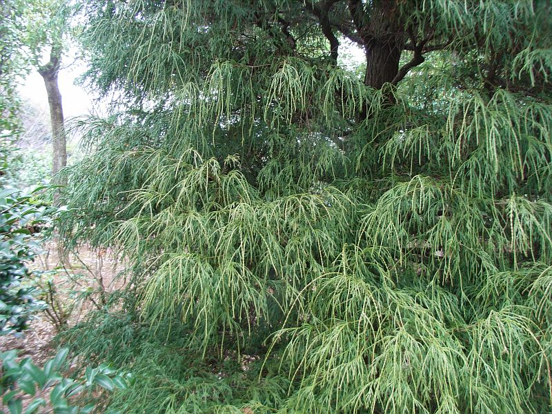 サワラの園芸種で枝や葉の先が垂れ下がる。