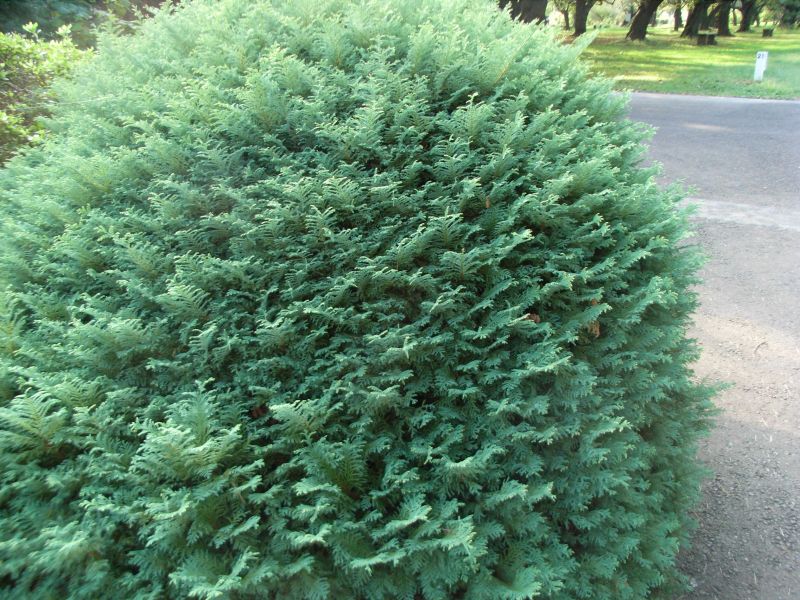 の園芸種で、葉が扇状に出て密につき、刈り込みに強い。