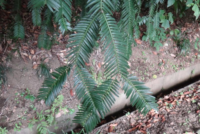 カヤ :葉がかたく先を触ると痛い。葉先は割れない。高さ25メートル。