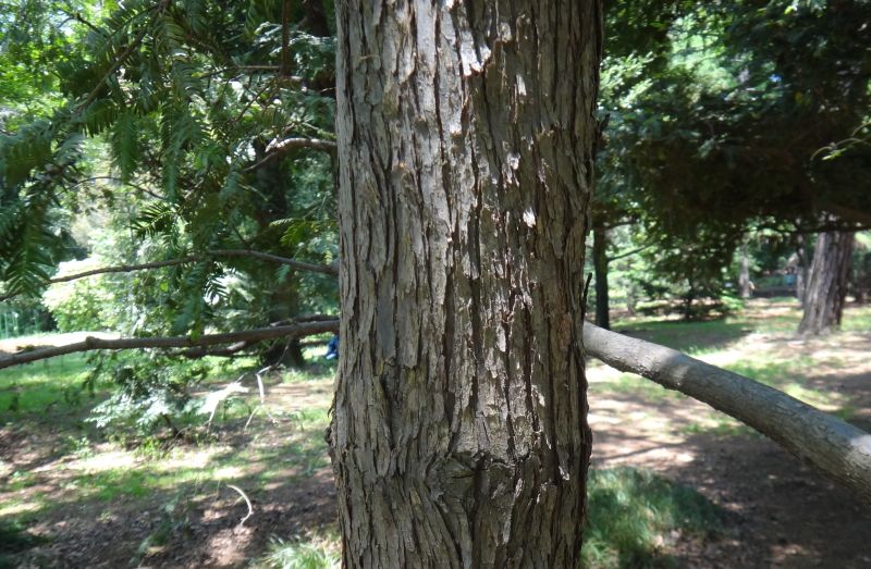 樹皮は暗褐色で縦に裂け、短冊状にはがれる。(2015/5/10)