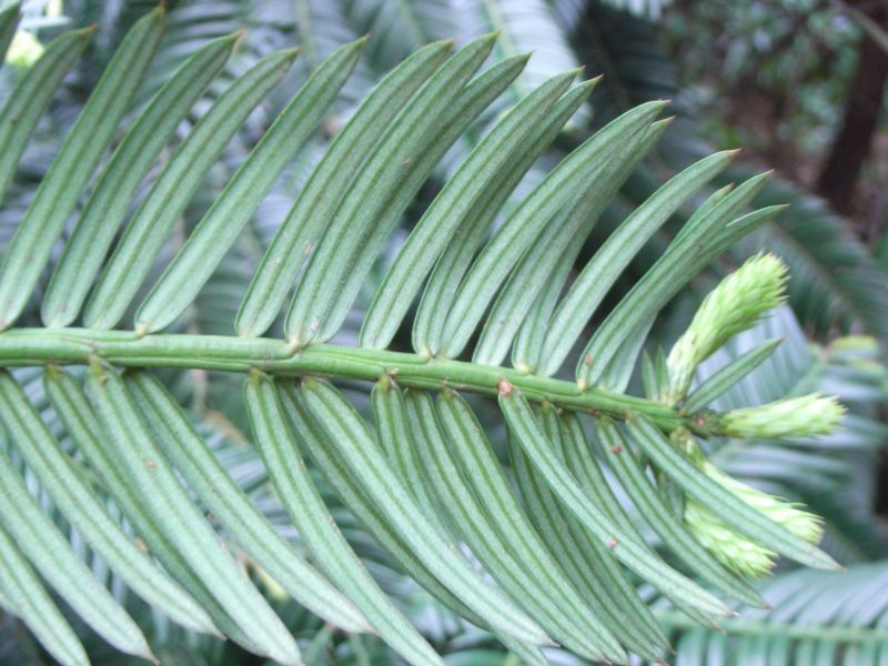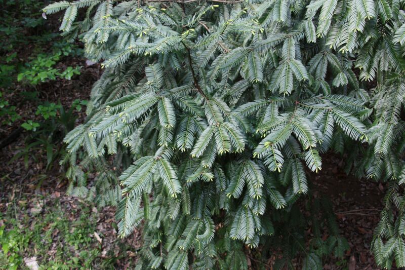 扁平な針状の葉が枝の左右に並ぶ。枝は対称的に出る。(2015/10/28)