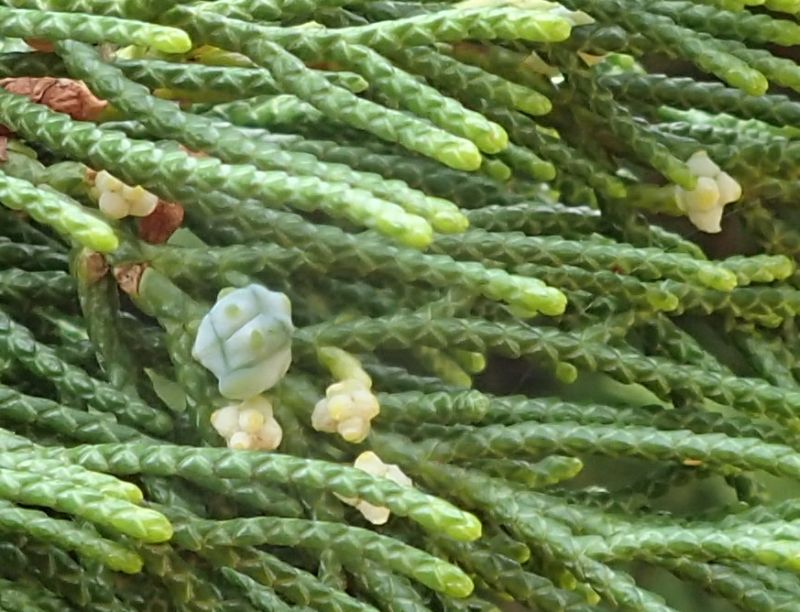 鱗片状が多いが、刈り込み後など、一部分針状になることがある。