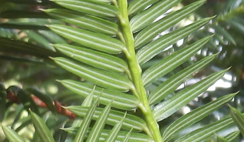 イヌガヤ:葉が柔らかく先を触っても痛くない。高さ10メートル。