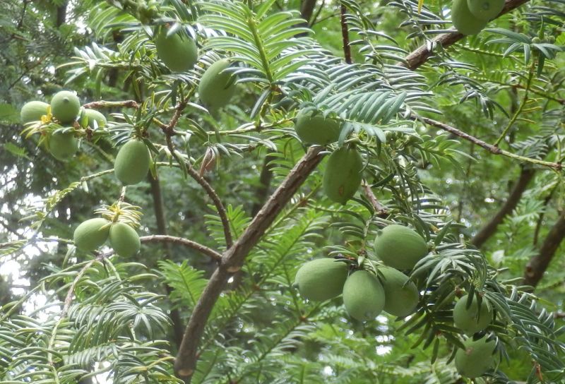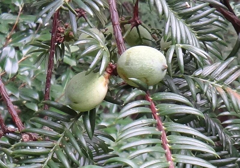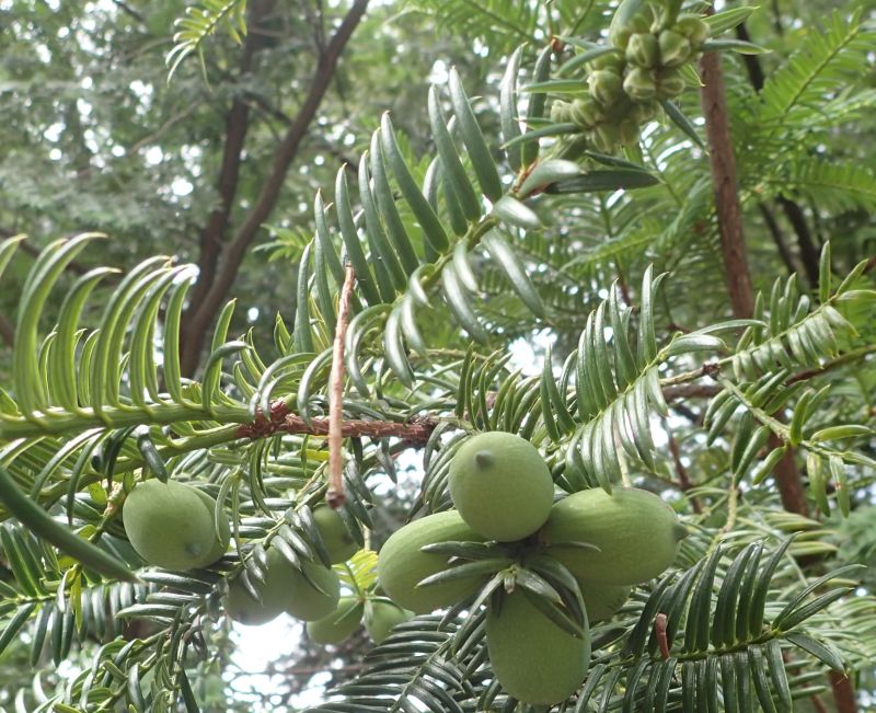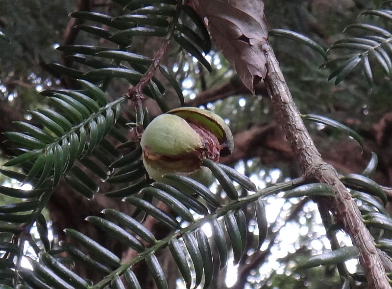 翌年の9月に熟して紫褐色となり、仮種皮が裂けて落下する。