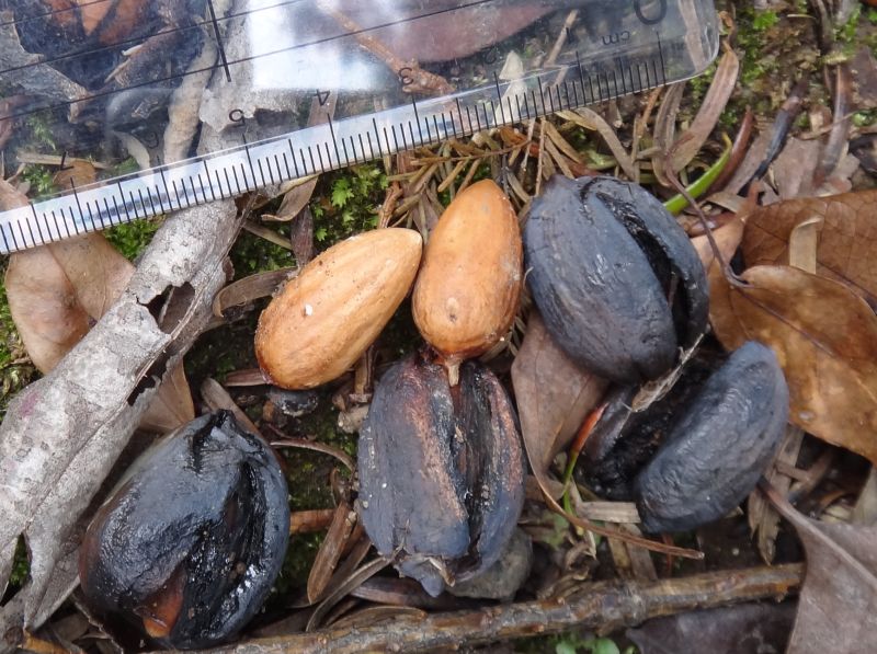 仮種皮がついたまま落ちて、淡褐色の種子が現れる。(2017/9/30)