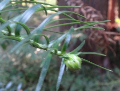 葉は扁平な鎌形。