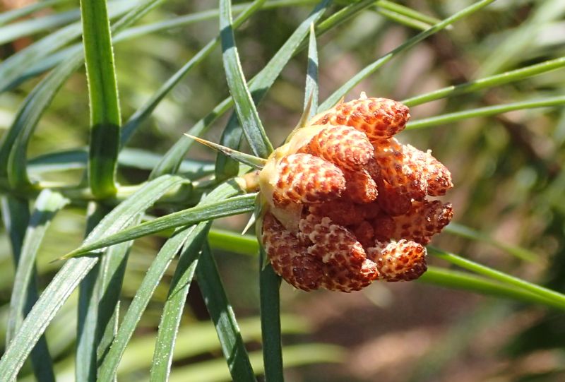 雌花は尖った突起が上向きに多数ついた形をしているが、