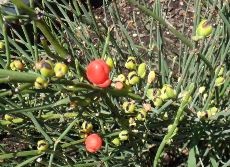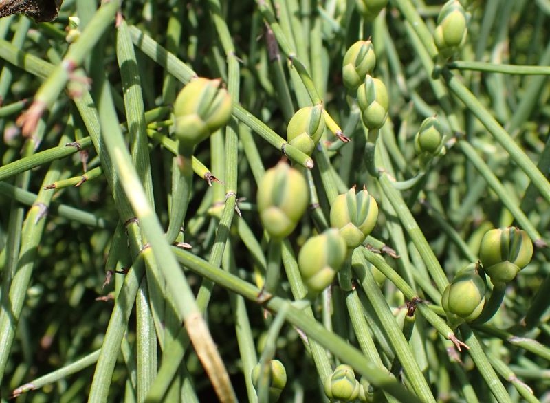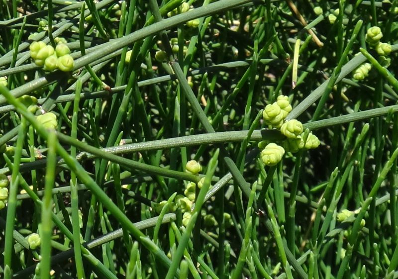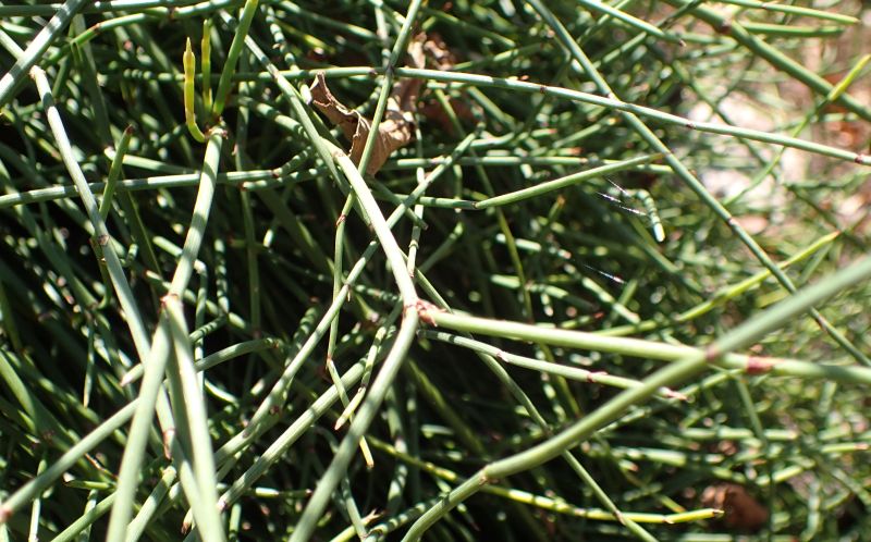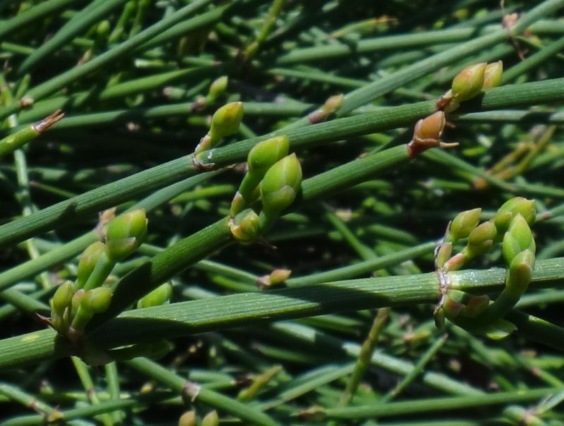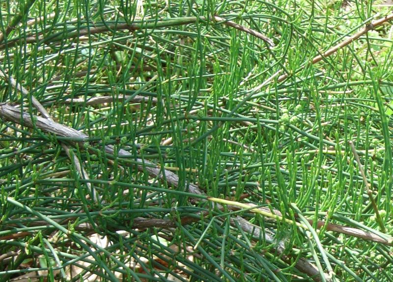 地下茎は太くて枝分かれし、生薬の麻黄として使われる。