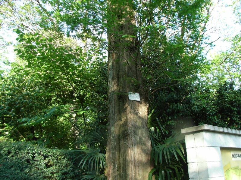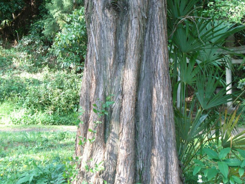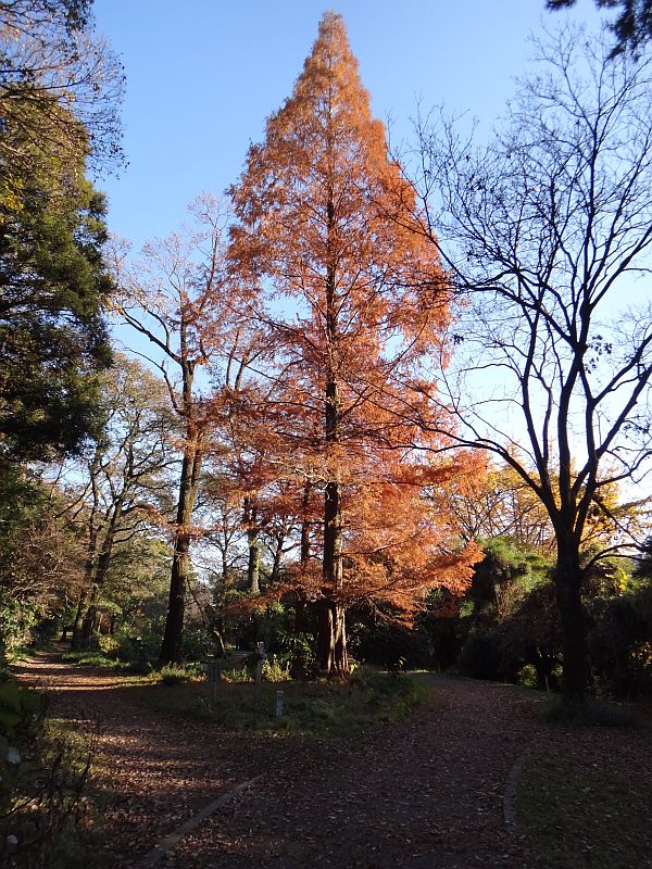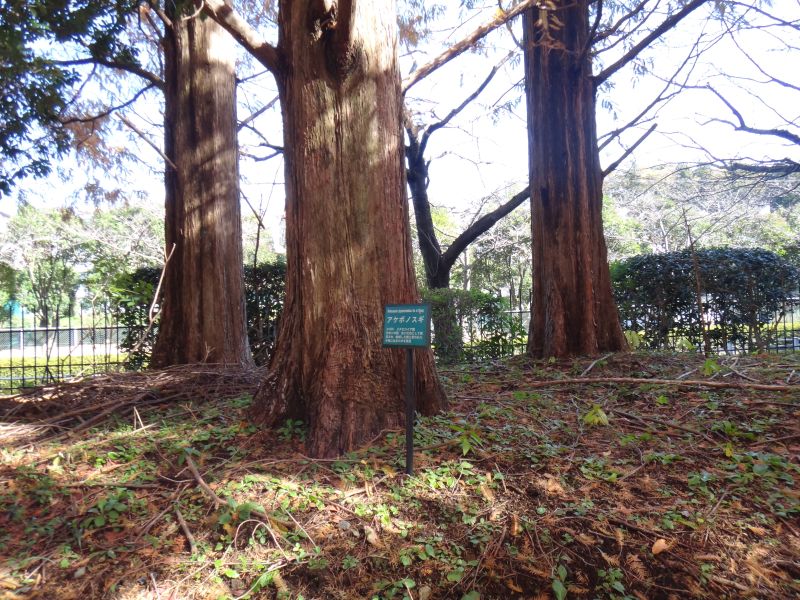 別名アケボノスギ。幹の基部は何本もの根につながるので、凹凸ができる。(2016/11/26)