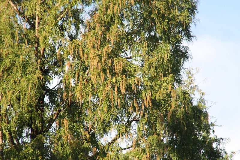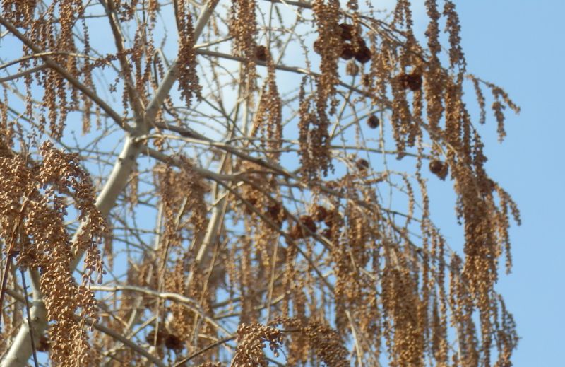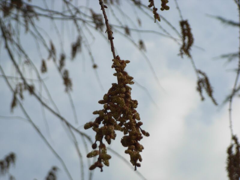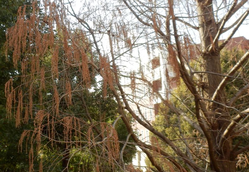 雄花序は秋に伸びて落葉後に褐色の総となり、春に開花する。