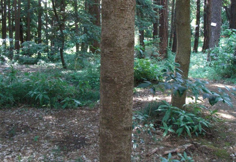 幹は暗灰白色でおおむね平滑であるが、薄片状に薄く割れることもあり、