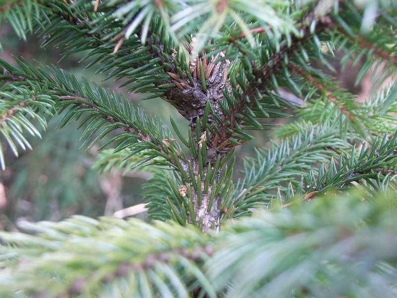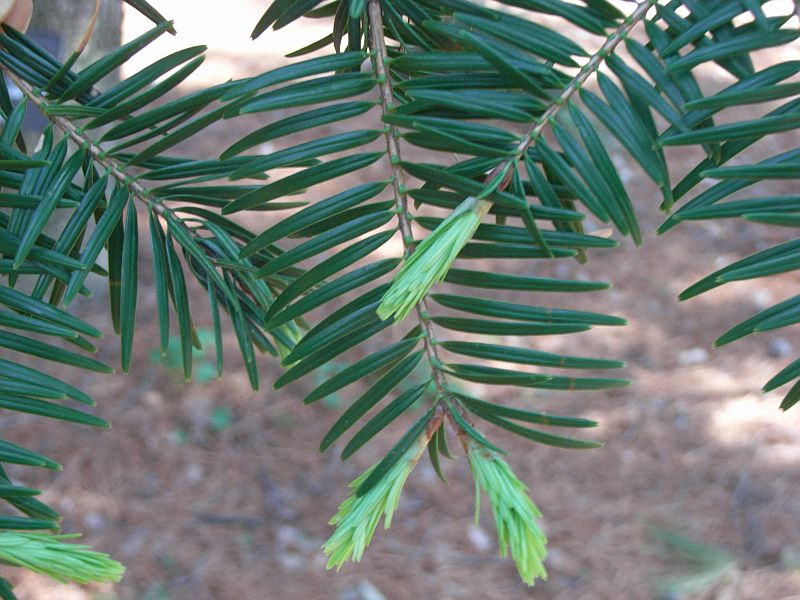 葉は長さ2〜3センチのやや扁平な針形で、2本ずつの束にならず、