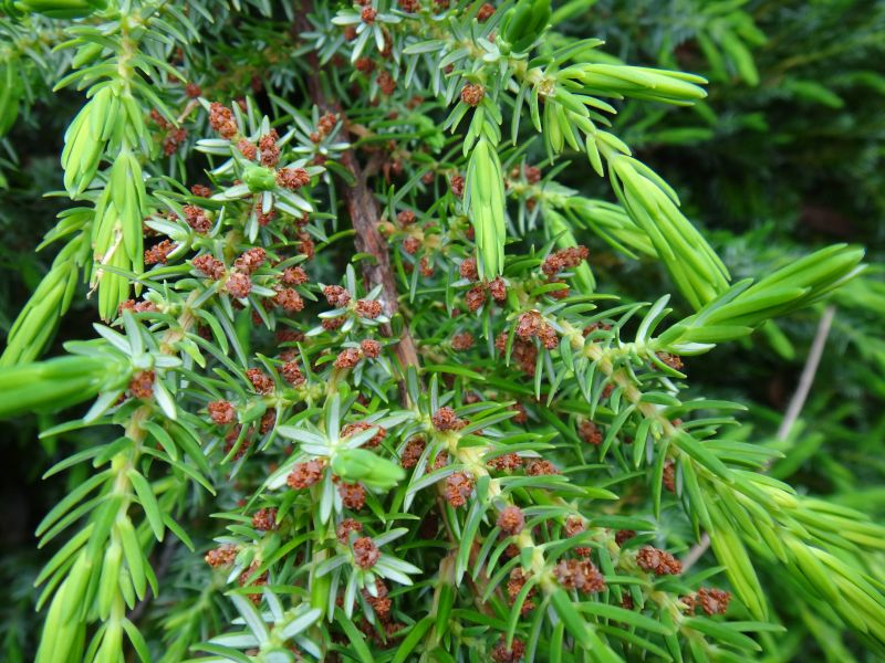 春に葉腋に球形で黄褐色の雄花が1個ずつつく。