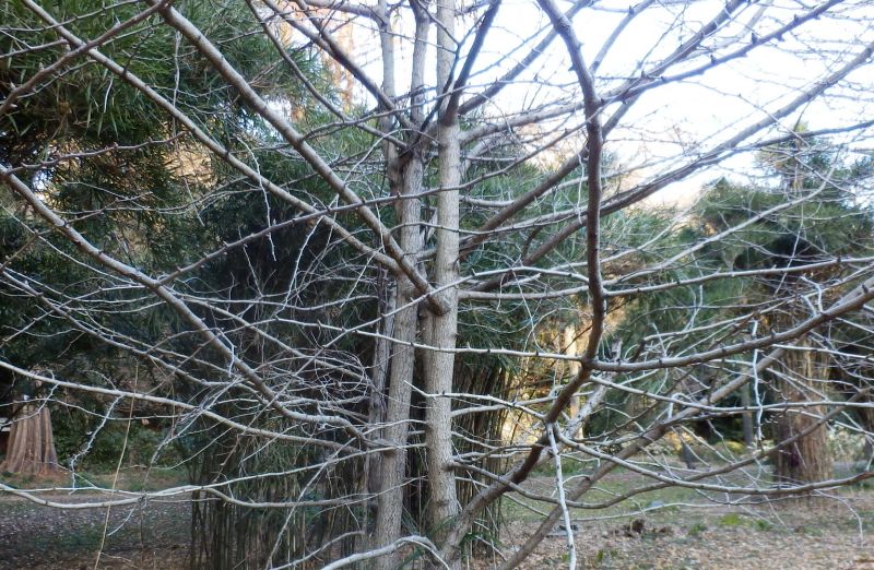 樹皮は灰褐色で、枝は勢いよく斜上する。 (2018/1/7)