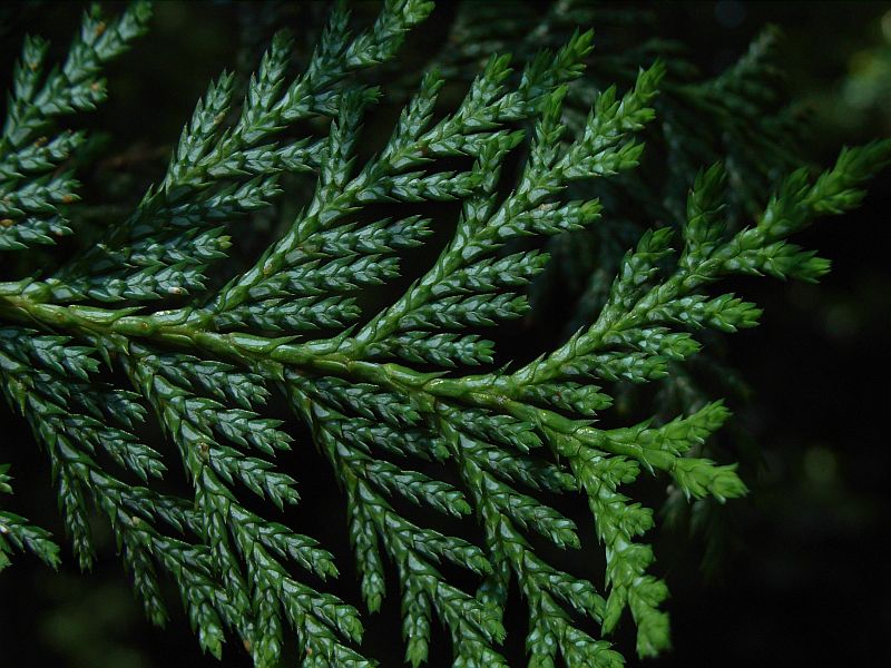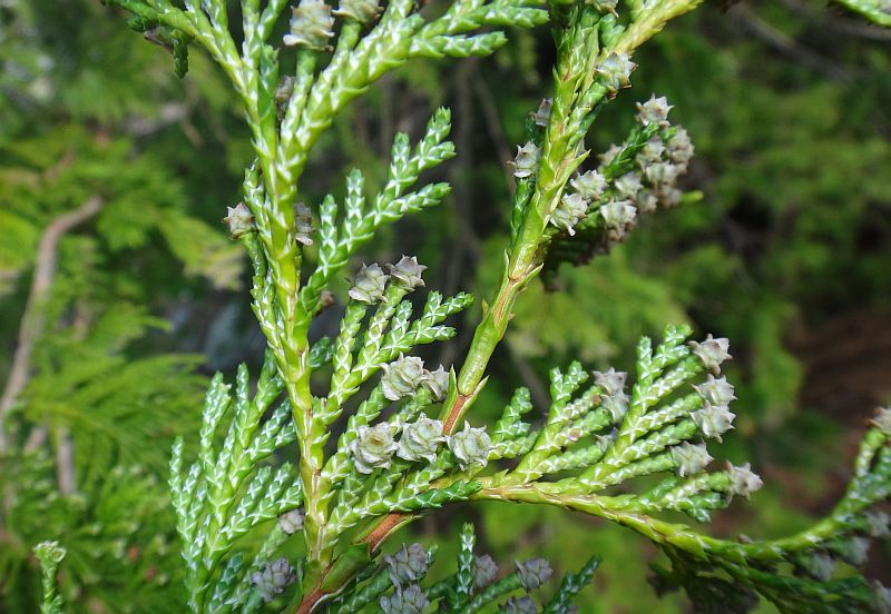 葉は鱗片状で葉柄がなく、小枝に密着して対生する。