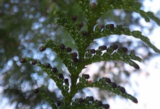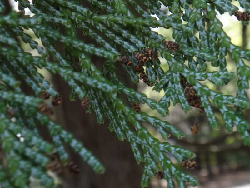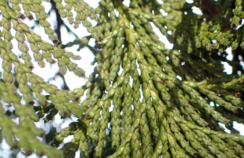 鱗片状の葉は小枝に密着して鱗状に重なり合い、十字対生する。(2016/10/6)