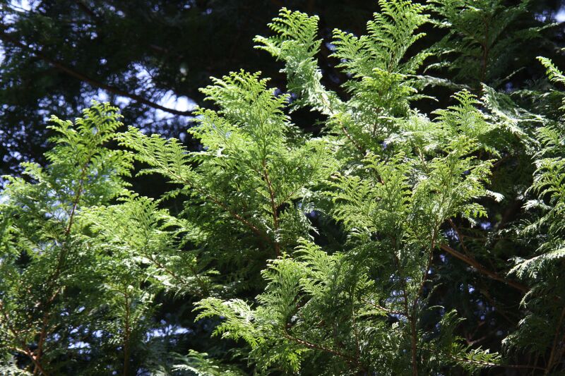 ヒノキ属、常緑、針葉樹、高木。