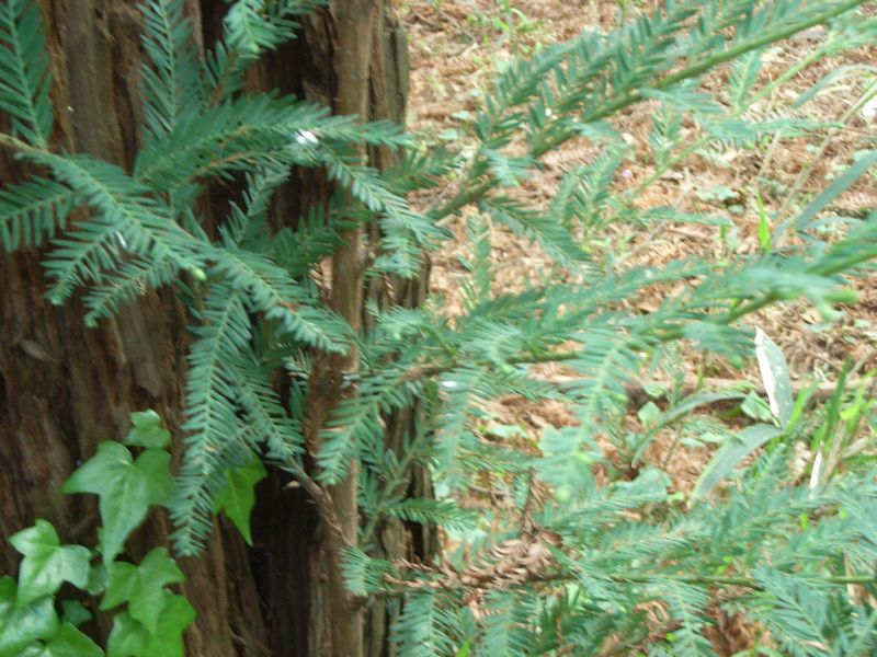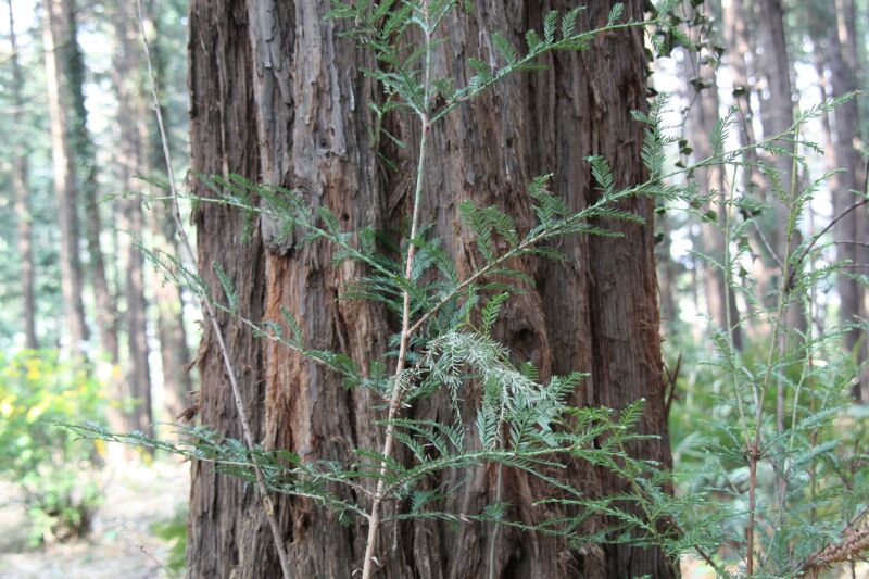 幹は赤褐色で縦の溝があり、樹皮が厚い。