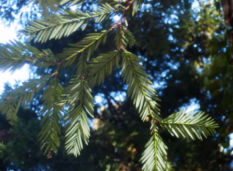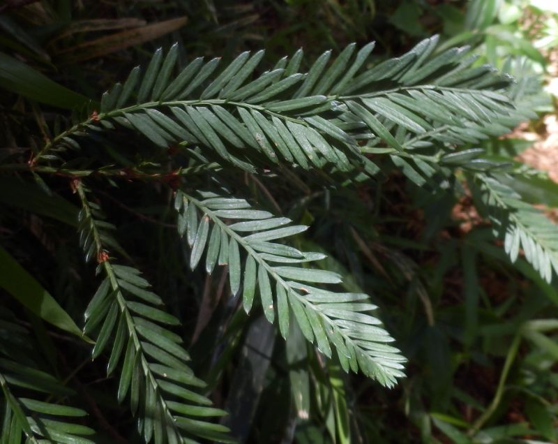 葉はやや扁平な針状で密に互生し、長さは6〜12ミリあり、