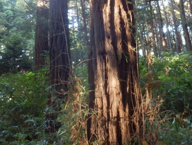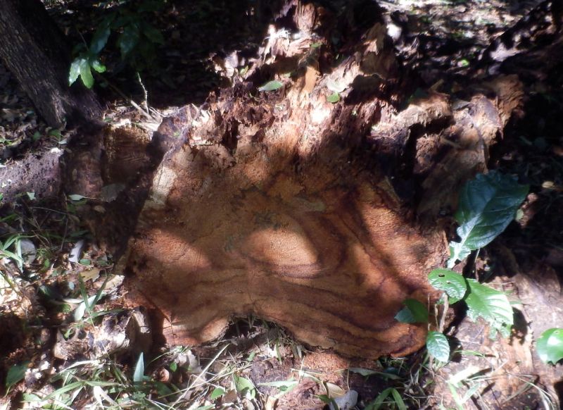 倒木となった若木。切り口は赤褐色で、樹皮が厚い。(2017/10/26)