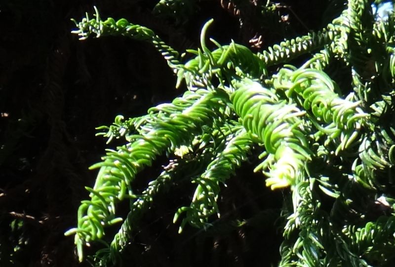 葉は針状で密に互生し、球果をつけ、原産地では100メートルの大木となる