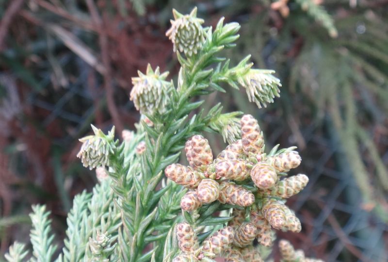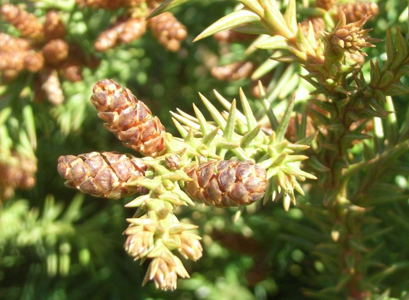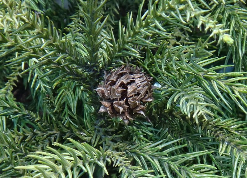受粉した雌花は1年後に球果となる。
