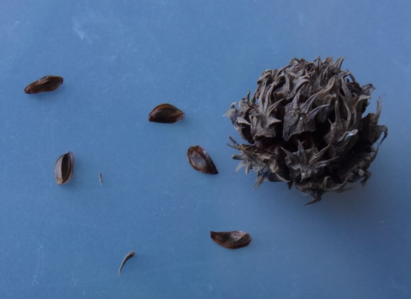 球果がひび割れて、狭い翼のある種子(長さ5〜6ミリ)が出る。