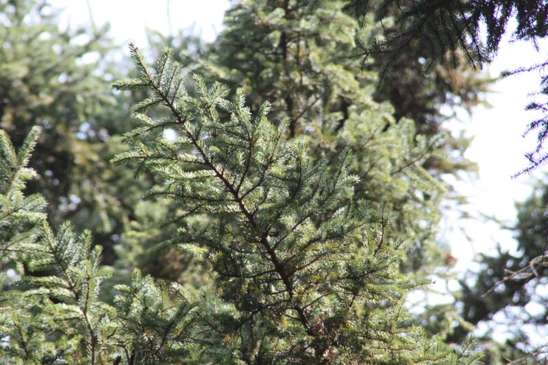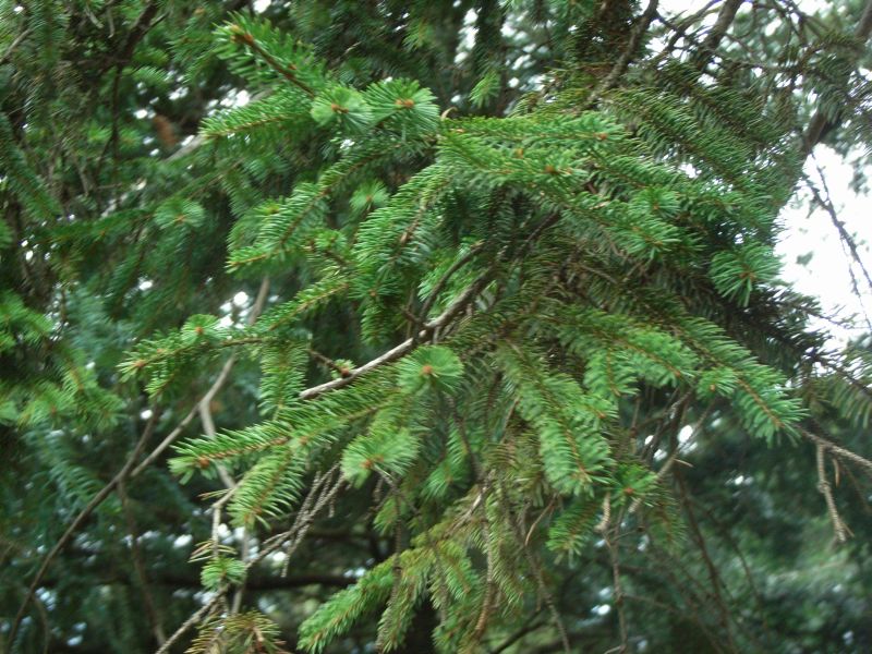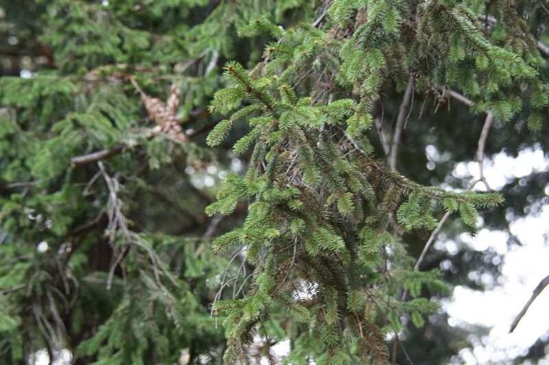 トウヒ属、常緑、針葉樹、高木。