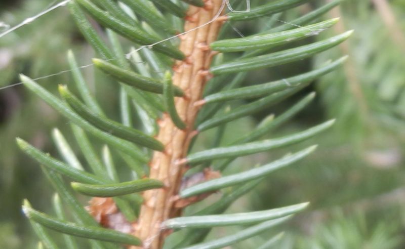 トウヒ :葉が扁平で長さ0.7〜1.5センチ、球果は長さ3〜6センチ。