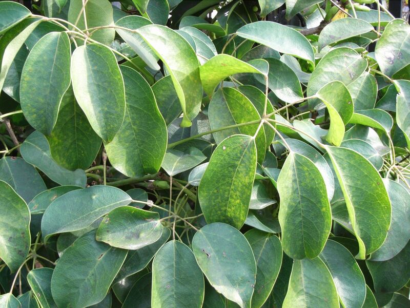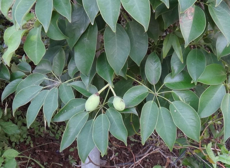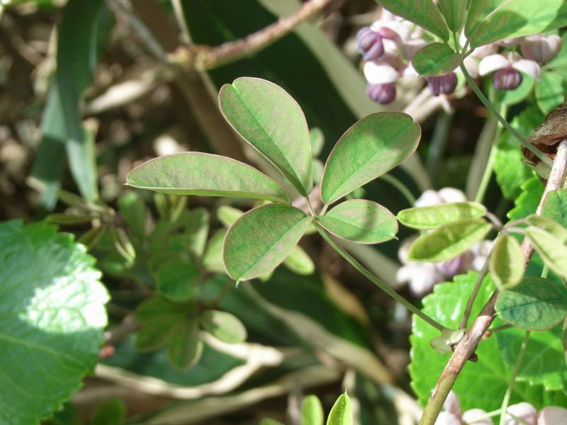 葉は掌状複葉で、長さ3〜6センチの長楕円形の小葉が5枚つく。