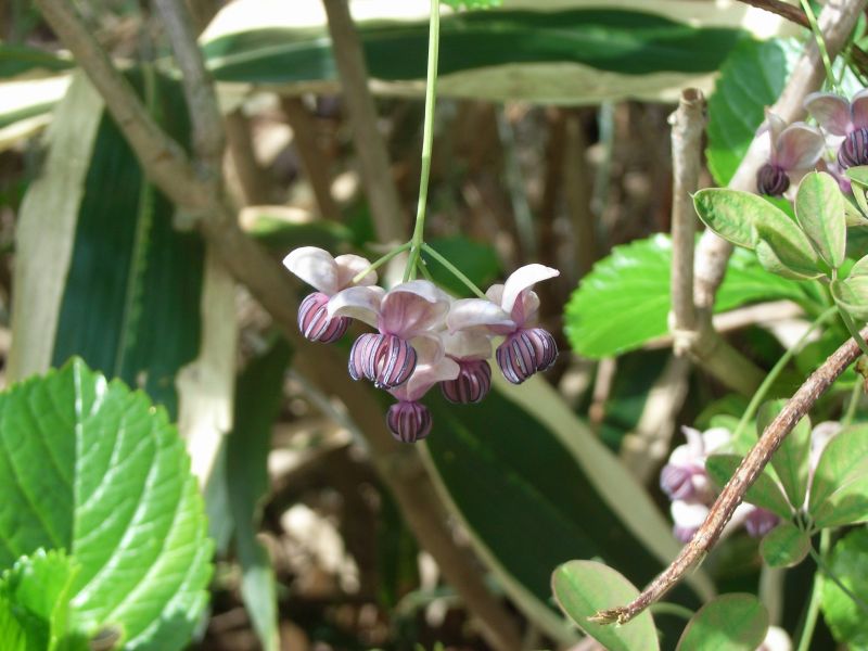 花には淡い紫色の萼片が3個あり、花弁はない。