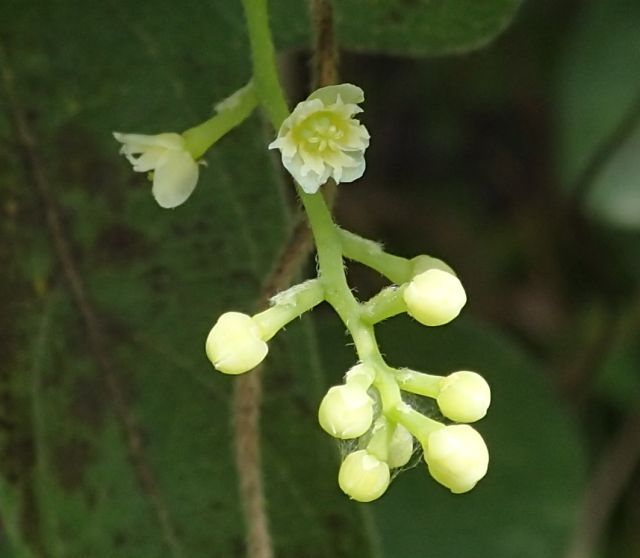 黄白色の小さい(花径3〜4ミリの)6弁花を咲かせる。