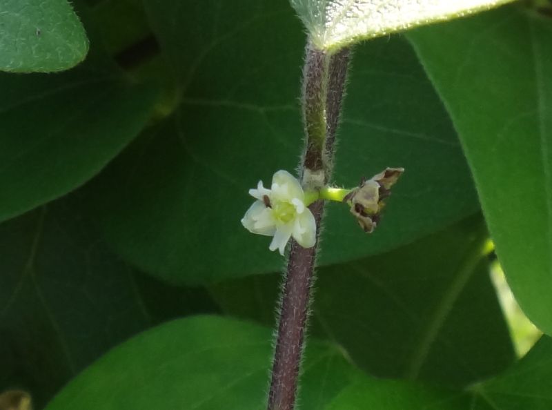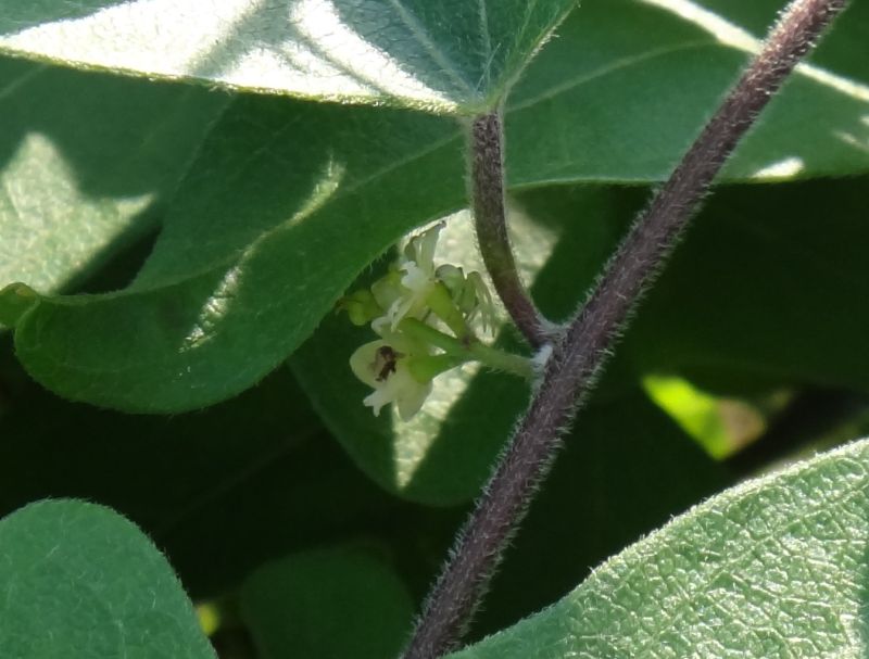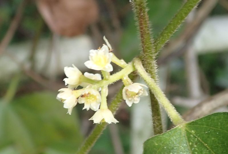 雌雄異株で、夏に葉腋と枝先に小さい総状花序を出し、