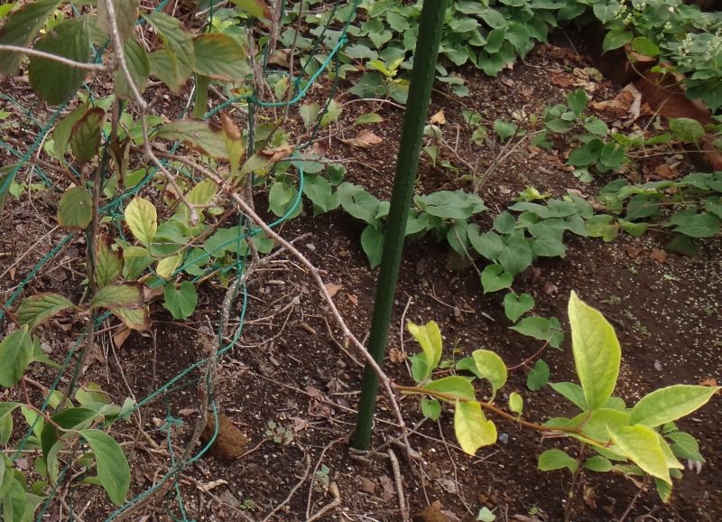 つるは灰褐色で木質化する。(2016/4/15)