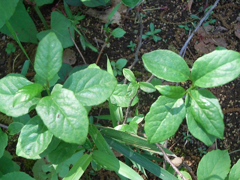 葉は倒卵形〜楕円形で、目立たない波状の鋸歯があり、葉脈が少しへこむ。