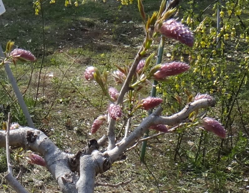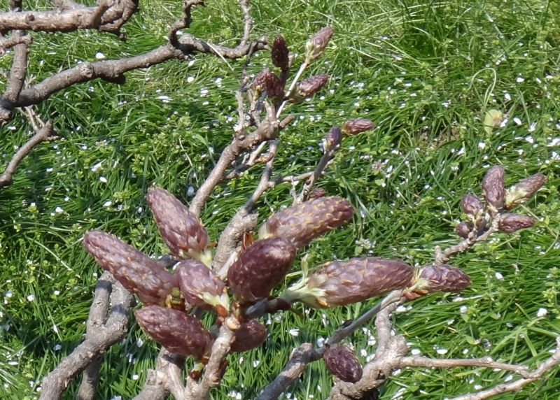 茎は木質化し、樹皮は灰褐色でひび割れる。