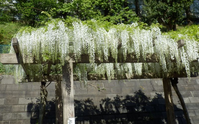 も花が白いが、そちらは総が短くつるが右巻きとなるなどの違いがある。