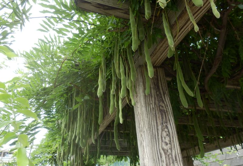 豆果は長さ10〜20センチと大きく、短毛が密生し、秋に熟し、