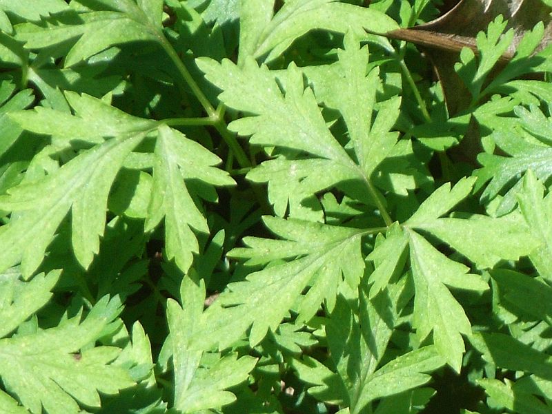 葉は3深裂して裂片はさらに細かく裂け、