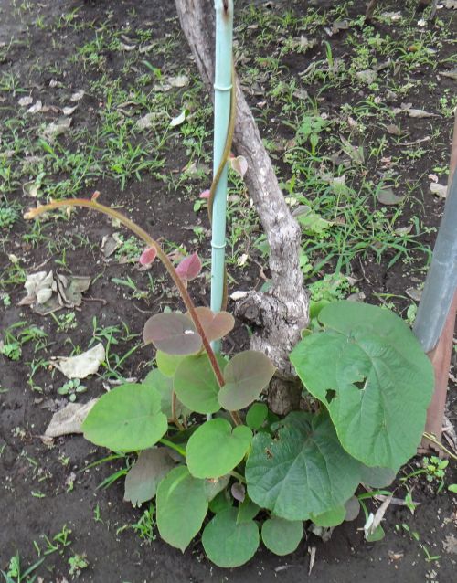 液果は長さ8センチぐらいの卵形で、表面は褐色で中は緑色である。