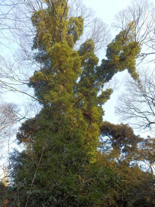落葉樹の高木にとりついたキヅタ。